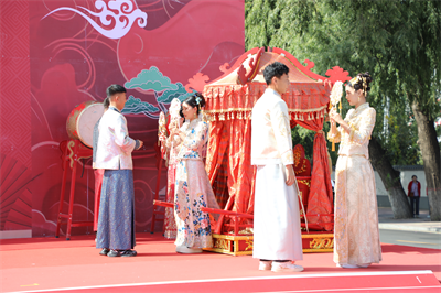 開幕式剛過活動(dòng)現(xiàn)場迎來了一場“傳統(tǒng)與現(xiàn)代”碰撞的婚俗盛宴。