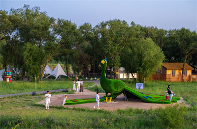游人在呼和浩特市玉泉區(qū)大黑河郊野公園“林下郊野萌寵樂園”拍照打卡。(攝影:丁根厚)