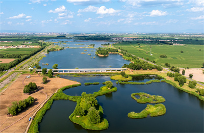 呼和浩特市玉泉區(qū)大黑河郊野公園千島湖景區(qū)碧波蕩漾,星羅棋布的湖島與藍天白云相映成趣,構(gòu)成一幅靈動的自然畫卷。(攝影:丁根厚)