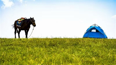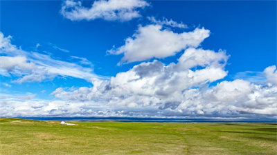 遠(yuǎn)山下的草原,湛藍(lán)天空上的云卷云舒,是牧人和馬兒的天堂。(攝影:達(dá)布西拉圖)