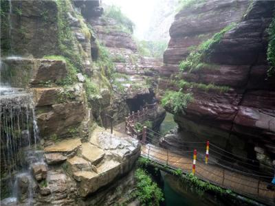 云臺(tái)山,國家AAAAA級(jí)旅游景區(qū),位于河南省焦作市修武縣和山西省晉城市陵川縣交界處,景區(qū)面積240平方公里,含紅石峽、潭瀑峽、泉瀑峽、青龍峽、峰林峽、子房湖、茱萸峰、獼猴谷、疊彩洞、百家?guī)r等主要景點(diǎn)。云臺(tái)山以山稱奇,整個(gè)景區(qū)奇峰秀嶺連綿不斷,主峰茱萸峰海拔1308米,踏千階的云梯棧道登上茱萸峰頂,可望千里太行深處,領(lǐng)略到“會(huì)當(dāng)凌絕頂,一覽眾山小”的意境;云臺(tái)山以水叫絕,素以“三步一泉,五步一瀑,十步一潭”而著稱。擁有314米的全國落差最高大瀑布-云臺(tái)天瀑,猶如擎天玉柱,蔚為壯觀,是中國發(fā)現(xiàn)的落差最大的瀑布之一。云臺(tái)山滿山覆蓋的原始森林,有深邃幽靜的溝谷溪潭,千姿百態(tài)的飛瀑流泉,如詩如畫的奇峰異石,形成了云臺(tái)山獨(dú)特完美的自然景觀,漢獻(xiàn)帝的避暑臺(tái)和陵基,中國山水園林文化鼻祖“竹林七賢”的隱居地(至今有劉伶醒酒臺(tái)、稽康淬劍石、孫登嘯臺(tái)等遺跡)。唐代藥王孫思邈的采藥煉丹遺跡,玄帝宮、重陽閣等等。唐代大詩人王維寫出“每逢佳節(jié)倍思親”千古絕唱的茱萸峰,以及眾多名人墨客的碑刻、文物,形成了云臺(tái)山豐富深蘊(yùn)的文化內(nèi)涵。園區(qū)地形復(fù)雜,氣候隨海拔與山勢(shì)山形變化各異、上下差異明顯,原始次生林覆蓋了整個(gè)山巒,各種樹木和奇花異草種類達(dá)五百多種。