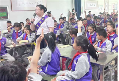 圖:呼倫南路支行員工為村鎮(zhèn)小學(xué)生們講解金融知識