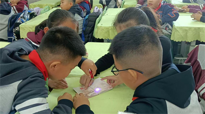 “大家仔細(xì)看,見(jiàn)證奇跡的時(shí)刻到了!”民警張秉毅拿起紫外線手電,對(duì)準(zhǔn)手中的護(hù)照內(nèi)頁(yè)。隨著光束移動(dòng),長(zhǎng)城的蜿蜒輪廓、上海浦東的摩天大樓等標(biāo)志性景觀逐一顯現(xiàn),課堂上瞬間響起此起彼伏的“哇”聲?!拔胰ミ^(guò)上海!這是東方明珠旁邊的樓!”“我在課本里見(jiàn)過(guò)長(zhǎng)城,原來(lái)護(hù)照里也有!”孩子們伸長(zhǎng)脖子,爭(zhēng)先恐后地指認(rèn)著熟悉的地標(biāo),小臉上滿是興奮。