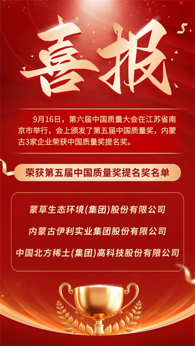 內(nèi)蒙古3家企業(yè)榮獲第五屆中國(guó)質(zhì)量獎(jiǎng)提名獎(jiǎng)