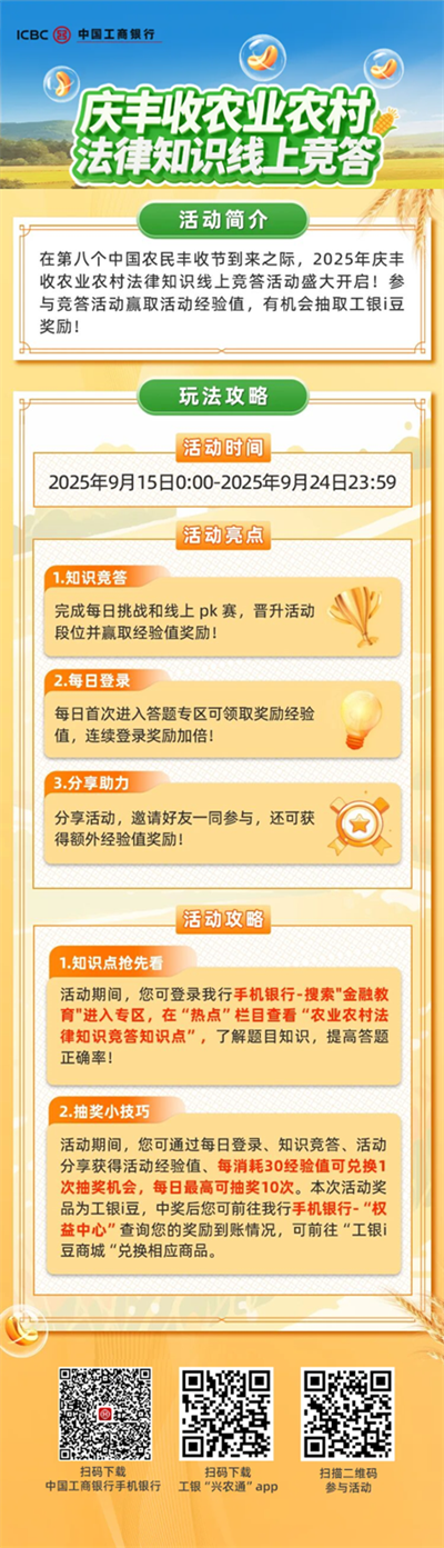 【答題】慶豐收農(nóng)業(yè)農(nóng)村法律知識(shí)線(xiàn)上競(jìng)答,贏最高3萬(wàn)工銀i豆!