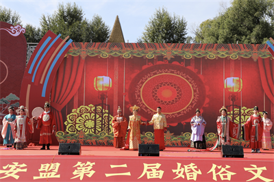 現(xiàn)場,中式、漢唐、周制、明制等特色婚禮秀輪番上演,紅蓋頭、合巹酒、結(jié)發(fā)禮等傳統(tǒng)儀式穿越千年,讓觀眾沉浸式感受中華婚俗的魅力,也看到了興安盟對傳統(tǒng)婚俗文化的用心傳承。