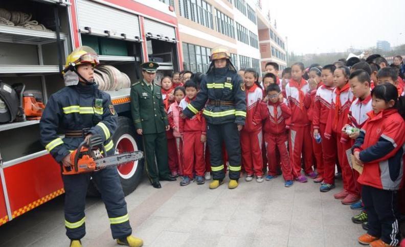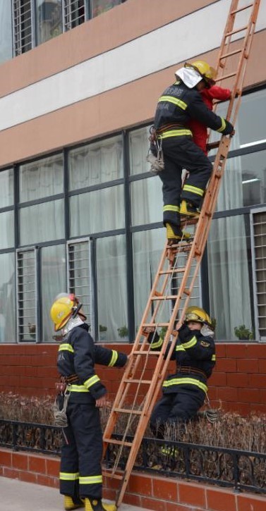 呼和浩特市賽罕區(qū)消防大隊(duì)教官在消防演練前,通過(guò)廣播向全體師生講解如何在火災(zāi)現(xiàn)場(chǎng)逃生、自救等消防知識(shí),隨后開(kāi)展了一場(chǎng)全面的消防逃生演練?!罢?qǐng)全體師生注意,學(xué)校發(fā)生火災(zāi),請(qǐng)同學(xué)們?cè)诎嗉?jí)老師的帶領(lǐng)下有序撤離教學(xué)樓!”上午10時(shí)15分,校園廣播室里傳出警報(bào)聲,學(xué)校立即啟動(dòng)了消防疏散預(yù)案。學(xué)生們?cè)诶蠋煹膸ьI(lǐng)下,手拿浸濕的毛巾或紙濕巾捂住口鼻,阻擋煙塵入口,彎腰低頭姿勢(shì)進(jìn)行,迅速向樓外撤離。到達(dá)安全地點(diǎn)后,各班班主任馬上集合本班學(xué)生清點(diǎn)人數(shù),并向領(lǐng)導(dǎo)進(jìn)行匯報(bào)。此時(shí),發(fā)現(xiàn)樓上有被困學(xué)生。接到“報(bào)警”后的消防員們?cè)诘谝粫r(shí)間趕到現(xiàn)場(chǎng),用最快速度確定營(yíng)救方法,并展開(kāi)消防救援。經(jīng)過(guò)緊張有序的疏散演練,被困學(xué)生獲救,全體師生撤離到安全地點(diǎn)。 演習(xí)結(jié)束后,在消防教官的帶領(lǐng)下,同學(xué)們參觀了消防車,零距離接觸體驗(yàn)消防裝備,聽(tīng)消防員講解相關(guān)避險(xiǎn)要點(diǎn),不斷獲取消防知識(shí)。