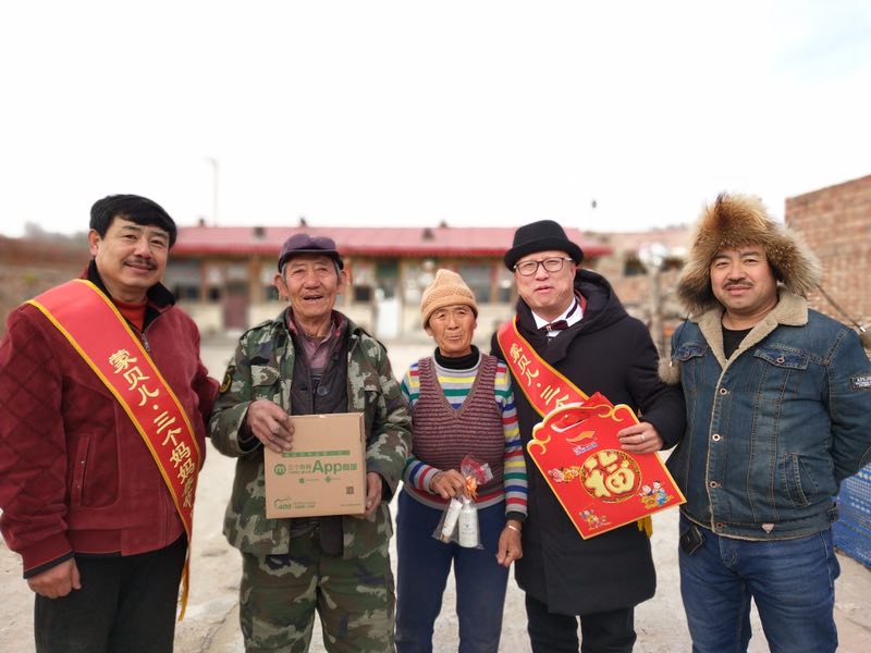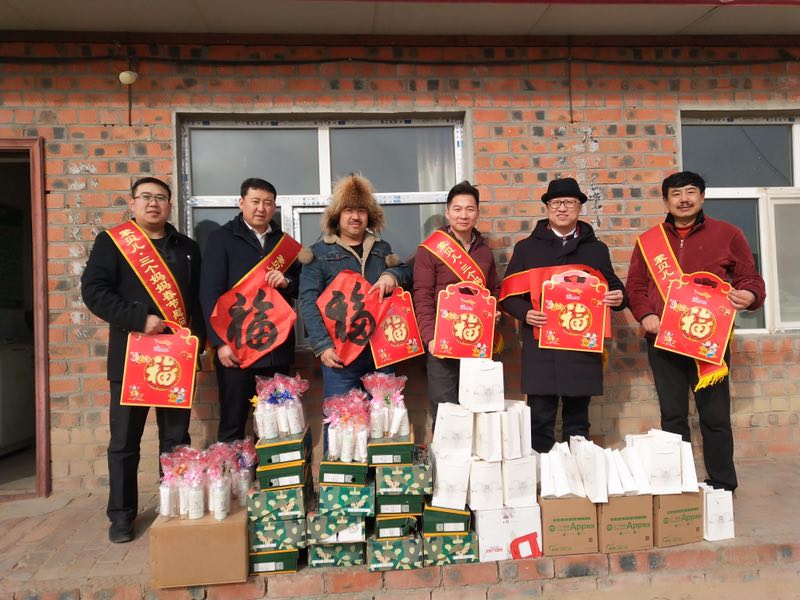 (本網(wǎng)訊:楊子奇)近日,全國商界精英商會、內(nèi)蒙古蒙貝兒生物科技有限公司聯(lián)合創(chuàng)始人兼首席顧問楊曉東、總經(jīng)理楊朔南、三個媽媽電子商務(wù)(北京)有限公司董事長兼CEO楊子奇、陳廣林先生、滿洲里駐呼辦董燕青主任等愛心人士一行驅(qū)車80公里來到呼市托克托縣油坊營村,企業(yè)家們帶來春節(jié)禮品:春聯(lián)、蒙貝兒羊胎素、洽洽瓜子、黃飛紅花生、大白兔奶糖、軍用皮鞋,黑龍江哈爾濱、加格達奇二位精英會會員捐款!到了村里,大家冒著臘月凜冽的寒風(fēng),走訪慰問村里困難群眾,并發(fā)放了慰問禮品!