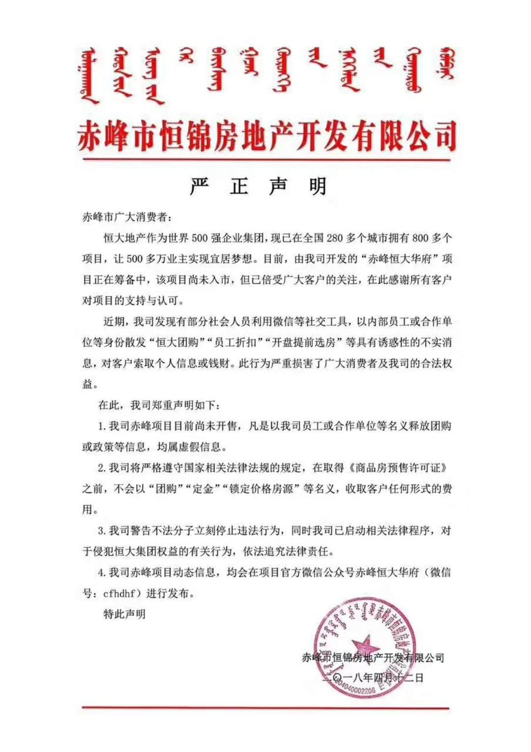 恒大集團(tuán)為維護(hù)廣大消費(fèi)者利益,特此嚴(yán)正聲明!