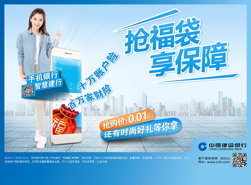 2018年7月1日起,全國建行個人用戶,只要登錄手機銀行點擊首頁輪播廣告圖“搶福袋 享保障”廣告頁,即可跳轉至活動界面參與本次活動,福袋數量有限,搶完即止。