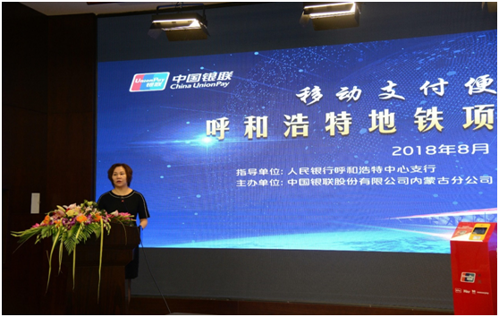人民銀行呼和浩特中心支行支付結(jié)算處王福計處長在講話中首先對雙方在地鐵合作項目前期的辛苦付出換來的合作成果表示祝賀,其次從金融標準支付安全角度詮釋了人民銀行為什么要開展移動支付便民示范工程,最后提出希望在銀聯(lián)及產(chǎn)業(yè)各方共同推出的銀行業(yè)統(tǒng)一APP“云閃付”推廣下,力爭三年內(nèi)使銀聯(lián)標準移動支付業(yè)務(wù)市場份額達到30%以上。