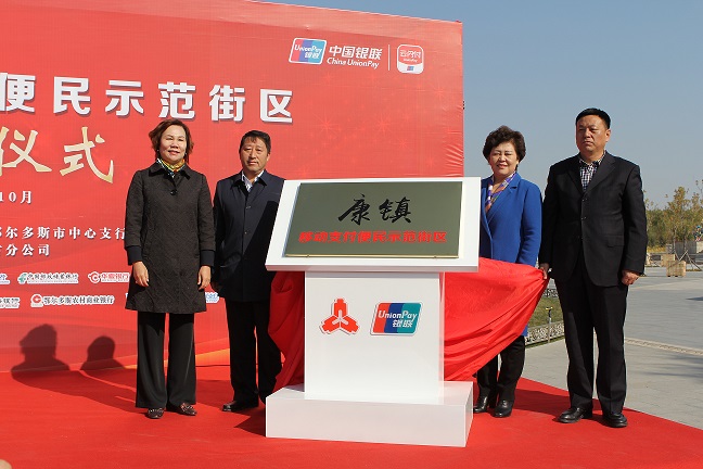 (高偉/通訊員)2018年10月12日上午,鄂爾多斯市移動支付便民示范工程“康鎮(zhèn)示范街區(qū)”驗收儀式在康巴什新區(qū)康鎮(zhèn)成功舉行,本次活動由人民銀行鄂爾多斯市中心支行和中國銀聯(lián)內(nèi)蒙古分公司聯(lián)合主辦。鄂爾多斯市人大副主任何濤、人民銀行鄂爾多斯市中心支行行長韓向國、鄂爾多斯政府金融辦主任袁新華、中國銀聯(lián)內(nèi)蒙古分公司總經(jīng)理戈嵐及當(dāng)?shù)?1家銀行和非銀行支付機構(gòu)領(lǐng)導(dǎo)參加驗收儀式。