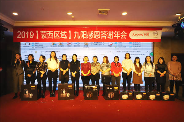 本網(wǎng)訊:2019年1月15日,內(nèi)蒙古領(lǐng)先電子暨蒙西區(qū)域九陽答謝年會在呼和浩特隆重,主題為"凝心聚力 攜手同行感恩答謝"表彰頒獎盛會。來自華潤萬家、華聯(lián)、維多利、東鴿、民族、蘇寧、鄂爾多斯的華研、福海、蘇寧等店經(jīng)理、精英、領(lǐng)先電子電器的員工們,以及受邀的嘉賓們200多人參加。歡聚一堂,其樂融融;共進(jìn)晚餐,把酒言歡,回望輝煌過去,展望美好未來。