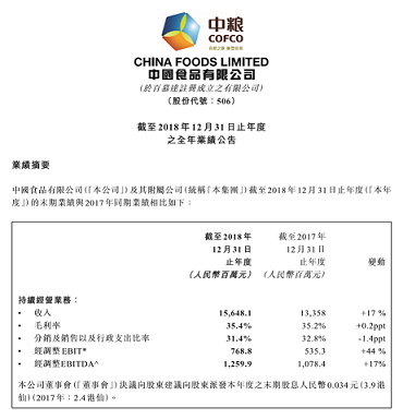 中國(guó)食品董事總經(jīng)理欒秀菊女士表示,“2018是轉(zhuǎn)型成功的一年。從業(yè)績(jī)上看,公司持續(xù)經(jīng)營(yíng)業(yè)務(wù)的盈利能力得到提升,收入與利潤(rùn)都保持了快速增長(zhǎng),我們用業(yè)績(jī)證明了專業(yè)化重組的正確性。從經(jīng)營(yíng)角度看,得益于現(xiàn)代化管理和協(xié)同效應(yīng)增強(qiáng),公司的經(jīng)營(yíng)效率和成本進(jìn)一步優(yōu)化,企業(yè)活力不斷激發(fā),公司利潤(rùn)、股東權(quán)益回報(bào)等關(guān)鍵指標(biāo)的增長(zhǎng)率均高于系統(tǒng)平均水平?!?br />