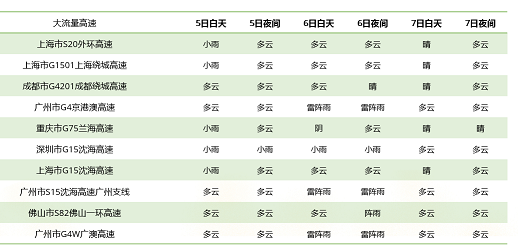南方多地將間歇性降雨 交通流量十大高速天氣預(yù)報出爐