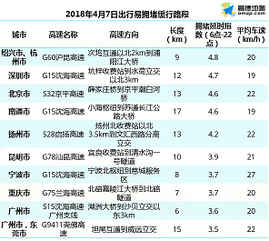 返程方面,預(yù)計4月7日交通壓力較大高速路段為G60滬昆高速(次塢互通以北2km到浦陽江大橋),全天擁堵延時指數(shù)為4.8,平均車速20km/h,其次是G15沈海高速深圳段(坑梓收費站到水荷立交以北3km),全天擁堵延時指數(shù)4.7,平均車速約19km/h左右。