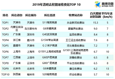 值得注意的是,《報告》還預(yù)測了清明期間高速收費站的擁堵情況,在出程高速收費站排名top10中,最擁堵的收費站是天津市永定新河收費站、白天擁堵延時指數(shù)高達15.3,平均車速僅為5千米/時,其次是烏蘭察布市蒙冀界收費站、深圳市鹽田收費站。返程方面,預(yù)計最擁堵收費站為遼寧省朝陽市冀遼主線收費站,白天擁堵延時指數(shù)為5.2,平均車速僅為6千米/時,其次為廣州的黃村收費站、成都市繞城高速成灌收費站等。