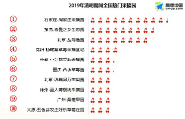 《報告》針對清明小長假期間,全國車流量較大且自駕出行熱度高的采摘園進行了預(yù)測。石家莊周家莊采摘園、東莞喜悅之鄉(xiāng)生態(tài)園、北京叢海逸園排名前三。