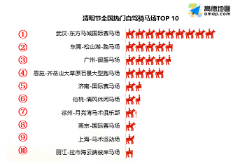 此外,《報告》預(yù)測了全國熱門騎馬場,預(yù)計全國熱門騎馬場為武漢市東方馬城國際賽馬場、東莞松山湖跑馬場、廣州御盛馬場等。《報告》提示,建議計劃前往以上目的地的公眾,出行前關(guān)注高德地圖路況信息,合理選擇出行路線