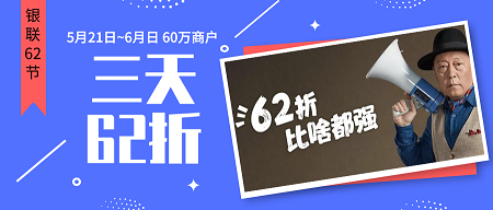 【銀聯(lián)62節(jié)】5月31日~6月2日,60萬商戶62折