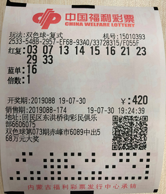 7月30日,雙色球第2019088期開獎,來自呼和浩特市回民區(qū)東洪橋街的第15010393號福彩銷售站中出一注雙色球二等獎,獎金203777元!