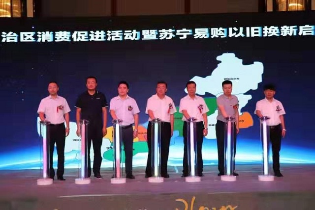 (梁海龍/通訊員)8月15日,由內(nèi)蒙古自治區(qū)商務(wù)廳指導(dǎo),呼和浩特市商務(wù)局舉辦主辦,蘇寧易購與回民區(qū)工業(yè)和信息化局共同承辦的2019年內(nèi)蒙古自治區(qū)消費(fèi)促進(jìn)活動暨蘇寧易購家電以舊換新啟動儀式在呼和浩特舉行。自治區(qū)商務(wù)廳副廳長尚志強(qiáng)、呼和浩特市商務(wù)局副局長田永貴、蘇寧易購集團(tuán)內(nèi)蒙古地區(qū)管理中心總經(jīng)理梁偉,賽罕區(qū)和回民區(qū)工業(yè)和信息化局領(lǐng)導(dǎo)及百大品牌供應(yīng)商共計(jì)100多人參加了啟動儀式。
