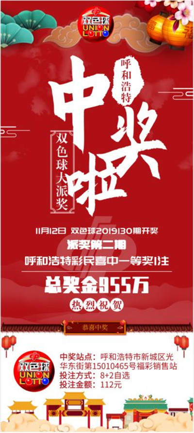 當(dāng)期雙色球頭獎(jiǎng)15注,其中12注為一等獎(jiǎng)特別獎(jiǎng),單注獎(jiǎng)金為929萬(wàn)多元(含派獎(jiǎng)250萬(wàn)元),這12注一等獎(jiǎng)特別獎(jiǎng)花落4地,其中一注降臨我區(qū)呼和浩特市, 這也是繼11月7日雙色球游戲第2019128期赤峰彩民喜獲605萬(wàn)一等獎(jiǎng)后,僅隔1期我區(qū)彩民再度結(jié)緣雙色球巨獎(jiǎng)!也是雙色球12億派獎(jiǎng)期間我區(qū)彩民收獲的第一注含金量超高的一等獎(jiǎng)!