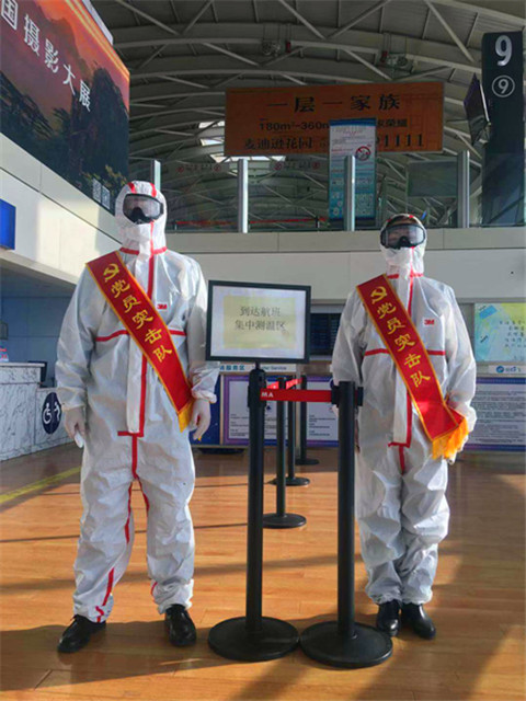 自1月23日航空安全保衛(wèi)部黨委成立疫情防控黨員突擊隊(duì)以來,除日常保障工作外,“黨員突擊隊(duì)”承擔(dān)了對(duì)所有特殊航班、特殊旅客的保障任務(wù):監(jiān)護(hù)疫區(qū)航班、檢查特殊旅客、保障支援疫情最前線的醫(yī)護(hù)人員、協(xié)助醫(yī)療急救中心防控疫情……現(xiàn)在,他們走上了另一個(gè)危險(xiǎn)崗位,對(duì)進(jìn)港體溫異常的旅客進(jìn)行二次測(cè)溫?!岸螠y(cè)溫”,顧名思義,在旅客下機(jī)后,“黨員突擊隊(duì)”要對(duì)通過第一次體溫檢測(cè)排查出的體溫異常旅客進(jìn)行第二次體溫檢測(cè),這是一項(xiàng)非常危險(xiǎn)的工作,直接面對(duì)著可能或疑似患者。