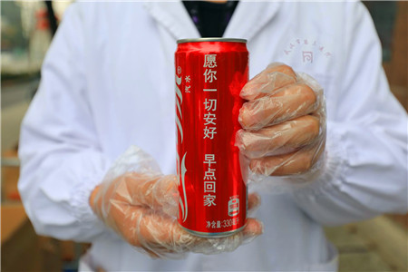 “愿你一切安好,早點(diǎn)回家”、“無(wú)畏無(wú)我,向最美逆行者致敬”,一罐罐被印上溫馨和正能量語(yǔ)句的可口可樂,讓接收到它們的醫(yī)務(wù)人員頗感欣慰與溫暖。