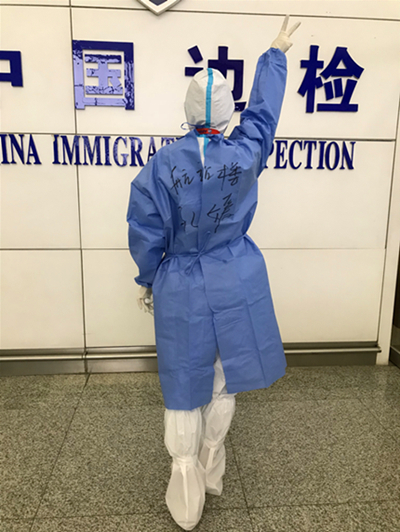 防護服下的孔媛們,拋家立業(yè)舍團圓;隔離衣下的我們,日夜堅守,筑起國門防疫的壁壘,在“外防輸入”的關鍵時刻,志愿者們“戰(zhàn)”在一起,以實際行動踐行初心使命!