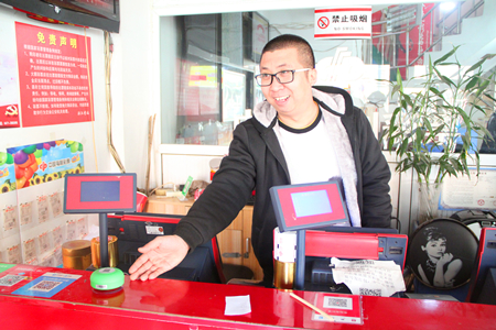 “雖然受疫情影響,客流量大幅減少,但我們?nèi)匀槐3终I業(yè),早晨七點(diǎn)鐘上班,集中消毒,打掃衛(wèi)生,為彩民們燒熱水。