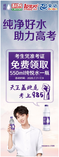 呼和浩特市、包頭市兩市參加2020年高考的考生,7月7日至7月9日,持準考證到考點周邊指定便利店即可領(lǐng)取500毫升純悅水一瓶。