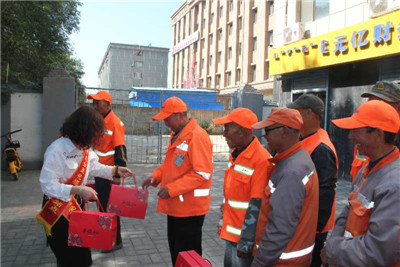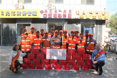城市的美麗市容市貌,離不開環(huán)衛(wèi)工人的辛勤付出,無論是炎炎夏日,還是凜冽寒冬,他們都堅(jiān)守崗位,此次高國帥夫婦自費(fèi)購買中秋月餅,借綿薄誠心之禮,由衷向各位環(huán)衛(wèi)工人致以中秋祝福。9月25日,兩家彩站協(xié)調(diào)海西路環(huán)衛(wèi)工人倒休時(shí)間,在大家休息時(shí)將月餅送到他們手中,并表示自家銷售站是周圍營業(yè)時(shí)間最長的門店,長期為交警、城管、環(huán)衛(wèi)工人提供熱水和休息場(chǎng)所,隨時(shí)歡迎大家的到來。收到月餅的環(huán)衛(wèi)工人臉上都洋溢著幸福的笑容,連連向業(yè)主表達(dá)謝意,感慨覺得自己的辛勤勞動(dòng)得到了認(rèn)可,今后將更加盡職盡責(zé),建設(shè)美麗城市。