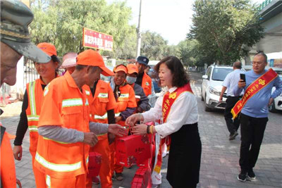 (尚錦妙/通訊員)中秋將至,為表達(dá)對(duì)環(huán)衛(wèi)工人的關(guān)懷和祝福,由高國帥夫妻二人共同經(jīng)營的呼和浩特市回民區(qū)海西路金海國際五金機(jī)電城福彩第15015332號(hào)和西二環(huán)鋼材市場(chǎng)福彩第15017313號(hào)銷售站聯(lián)合行動(dòng),為海西路環(huán)衛(wèi)工人送上月餅,感謝他們?yōu)槌鞘行l(wèi)生建設(shè)做出的貢獻(xiàn)。
