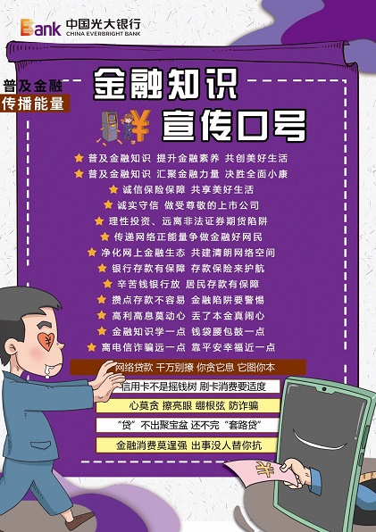 為持續(xù)推動金融知識普及和金融消費(fèi)者教育工作,提高消費(fèi)者金融素養(yǎng)及金融風(fēng)險防范意識,中國光大銀行呼和浩特分行持續(xù)推動金融消費(fèi)者教育、金融知識普及活動。該行制定了詳細(xì)的活動方案,全面發(fā)動線上線下做好金融知識宣傳,積極維護(hù)消費(fèi)者權(quán)益—受教育權(quán)。