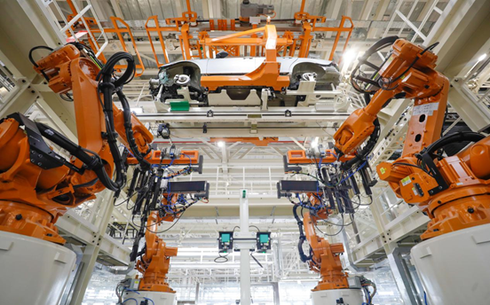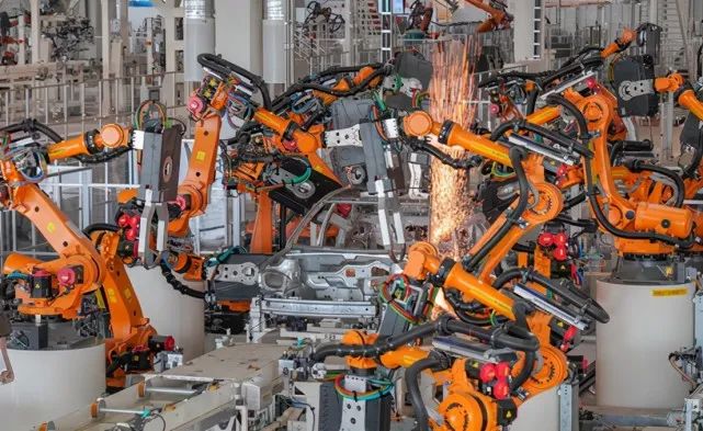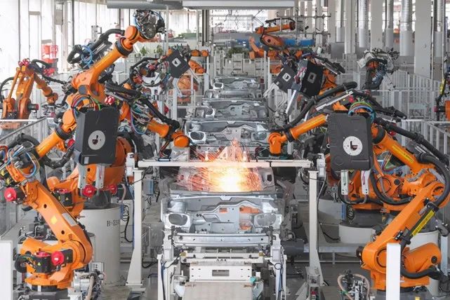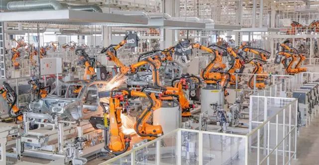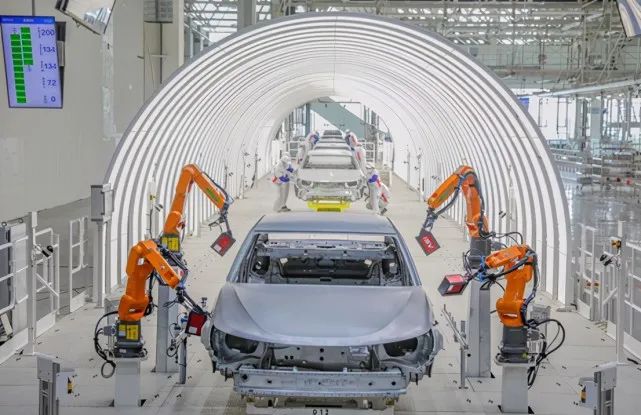 從生產(chǎn)車間,我們發(fā)現(xiàn)目之所及都是“黑科技”。自動(dòng)化程度確實(shí)非常高,全部由機(jī)械臂和智能機(jī)器人完成對應(yīng)生產(chǎn)工序。各生產(chǎn)線上的智能機(jī)器人猶如熟練的技術(shù)工人般協(xié)同工作,精確地執(zhí)行點(diǎn)焊、鉚接、滾邊、噴漆、涂膠等任務(wù),再一次刷新了人們對智能工廠的認(rèn)識。以車身車間為例,通過德國庫卡和日本發(fā)那科的頂級智能技術(shù),可實(shí)現(xiàn)24小時(shí)不間斷工作,是世界最先進(jìn)的高端智能“黑燈工廠”。