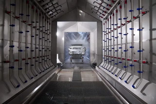 我們從曝光的生產(chǎn)調(diào)試現(xiàn)場畫面可以看到:一列列大型機(jī)械臂靈活地運(yùn)動(dòng)著、手握3D噴槍機(jī)器人高效地運(yùn)轉(zhuǎn),有條不紊地精準(zhǔn)執(zhí)行鉚接、滾邊、噴漆等任務(wù)。