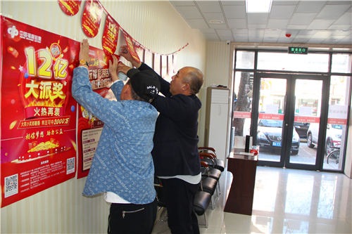 市場(chǎng)二部工作人員為全市588家福彩銷售站和銷售廳派送活動(dòng)宣傳用品,協(xié)助銷售站業(yè)主張貼海報(bào),并再次提醒業(yè)主與彩民朋友們?cè)敿?xì)了解活動(dòng)規(guī)則、獎(jiǎng)級(jí)設(shè)置和相關(guān)購(gòu)買須知,希望他們能夠保持一顆平常心,在擁有更好游戲體驗(yàn)的同時(shí),也能充分體會(huì)到刮刮樂(lè)所帶來(lái)的樂(lè)趣。