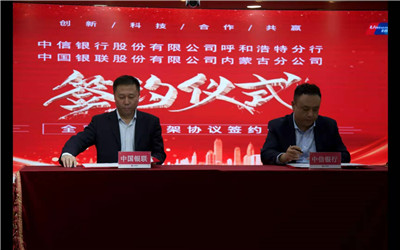 11月17日,中國銀聯(lián)內(nèi)蒙古分公司與中信銀行呼和浩特分行在呼和浩特簽署協(xié)議,強(qiáng)化雙方全面戰(zhàn)略合作。中國銀聯(lián)內(nèi)蒙古分公司主要負(fù)責(zé)人包鐵軍與中信銀行呼和浩特分行行長(zhǎng)王通出席簽約并會(huì)談。