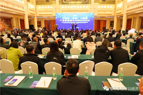 內蒙古僑聯(lián)副主席、特弘煤電集團董事長丁文祥,鄂爾多斯市僑商聯(lián)合會會長、內蒙古蒙發(fā)集團董事長高柱及全市各商會、協(xié)會、各行業(yè)的企業(yè)家近200人歡聚一堂,共同見證了石墨烯大健康產業(yè)聯(lián)盟鄂爾多斯啟動儀式的舉辦。
