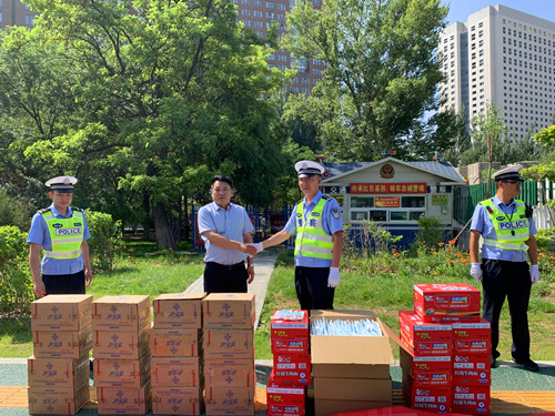 內(nèi)蒙古陜西商會秘書長周全峰說:“最近氣溫不斷攀升,一線執(zhí)勤交警特別辛苦。我們此次慰問活動就是為了感謝一線交警為維護(hù)城市道路交通秩序、保障道路交通暢通付出的辛勤勞動和汗水。希望交警同志們在高溫天氣下要注意防暑降溫,保障自身的安全。”