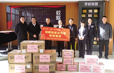 工銀“烏蘭牧騎”通遼經(jīng)濟(jì)技術(shù)開發(fā)區(qū)支行小分隊(duì)為學(xué)校捐贈防疫物資。