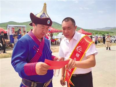 強(qiáng)化基層黨建共建。實(shí)施手拉手、結(jié)對子工程,黨建+金融融合,政府+銀行聯(lián)動,充分發(fā)揮基層黨員的模范帶頭作用和基層黨組織的戰(zhàn)斗堡壘作用,用黨建工作優(yōu)勢為鄉(xiāng)村振興注入強(qiáng)勁動力。李峰表示,要依托烏蘭牧騎自有的紅色基因,發(fā)揮老區(qū)紅色故事、紅色家底在深入開展黨史學(xué)習(xí)教育中的關(guān)鍵作用,以“工銀‘烏蘭牧騎’+黨史聯(lián)學(xué)共建”的形式,與蘇木嘎查開展黨建共建、紅色教育、金融科普、調(diào)研慰問等方面的活動,為群眾送去思想上的關(guān)心、經(jīng)濟(jì)上的資助、生活上的照顧和精神上的慰問,增添鄉(xiāng)村群眾致富的信心與動力。