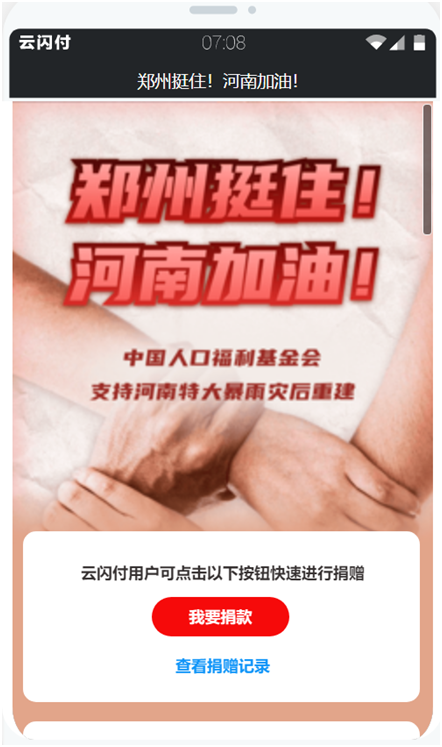 河南等地近日突遭特大暴雨侵襲的災(zāi)情牽動(dòng)人心,繼在云閃付緊急上線“互助通道”后,7月22日,中國(guó)銀聯(lián)攜手中國(guó)人口福利基金會(huì)與易寶公益,進(jìn)一步在云閃付APP上線愛心捐款通道,為河南特大暴雨災(zāi)后恢復(fù)重建提供支援。