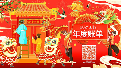 在呈現(xiàn)方式上,賬單創(chuàng)造性的采取“刷卡”方式打開,給人耳目一新的感覺。形式上以古代盛世平凡百姓勞作、吃飯、逛街等日常生活場景為背景,采用“清明上河圖”的創(chuàng)意,整個賬單正文頁合起來形成一幅完整的長卷軸國畫,有行云流水之意。賬單整體采用暖色調(diào),匯集大紅燈籠、煙花、祥云、集會等傳統(tǒng)元素,與新年歡樂、團(tuán)結(jié)的氣氛相契合,在畫風(fēng)上呈現(xiàn)當(dāng)前流行的新國潮,吸引Z世代年輕用戶的喜愛,也彰顯了對中華優(yōu)秀傳統(tǒng)文化的自信。同時,通過設(shè)置“閑話古‘金’”欄目,引導(dǎo)用戶點擊挖掘相關(guān)金融小趣聞,介紹古代人們勞動、生活、公益、環(huán)保等金融實踐的相關(guān)背景,體現(xiàn)了金融為民、綠色金融特點。