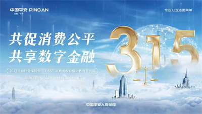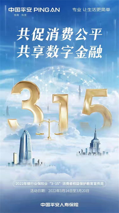 近日,中國平安人壽保險股份有限公司(以下稱“平安人壽”或“公司”)宣布啟動2022年“3·15”消費者權益保護教育宣傳周活動,聚焦“共促消費公平 共享數(shù)字金融”,守護消費者權益,助力構建和諧金融生態(tài)環(huán)境。