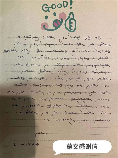 感謝信內(nèi)容:我是傲英部的斯琴,我的蒙古族客戶用漢語表達不太流利,感謝您在疫情特殊時期,用蒙語提供貼心服務(wù),為我順利的辦理業(yè)務(wù),解決了客戶的燃眉之急,感謝您!