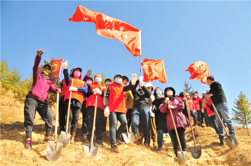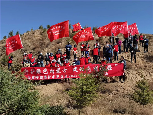 這是民建呼和浩特市委員會(huì)第9年開(kāi)展義務(wù)植樹(shù)活動(dòng)。