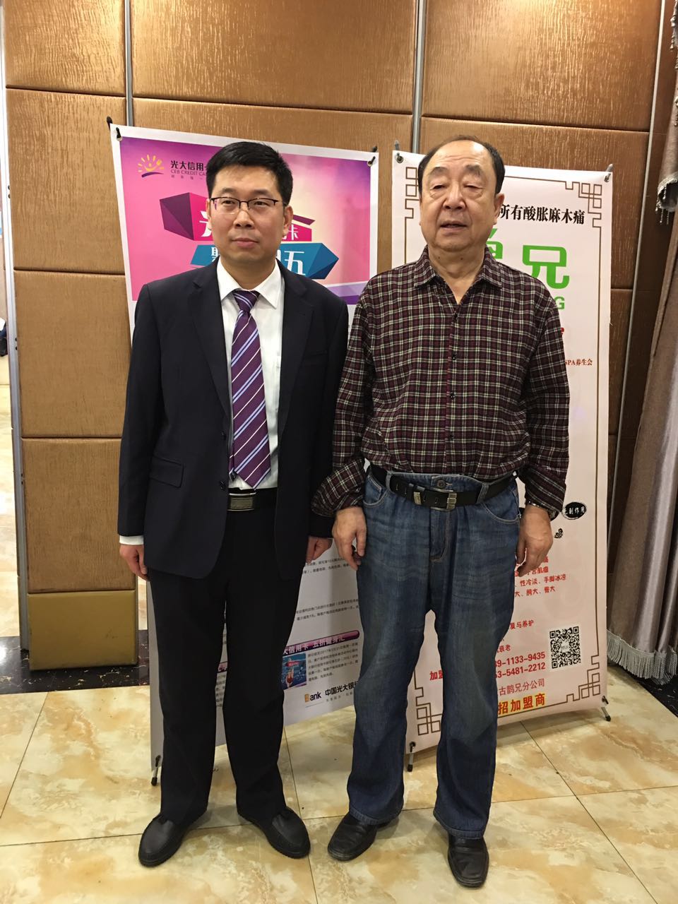 著名作家、書法家田彬(右)與中國光大銀行興安南路支行行長何宏圖(左)