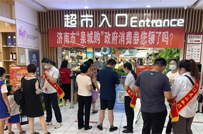▲建行山東濟南分行在政府消費券發(fā)放期間駐守本地賣場,為泉城消費者推介消費季活動,引導客戶參與使用